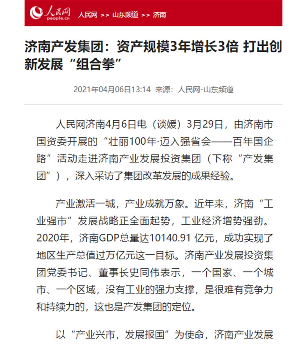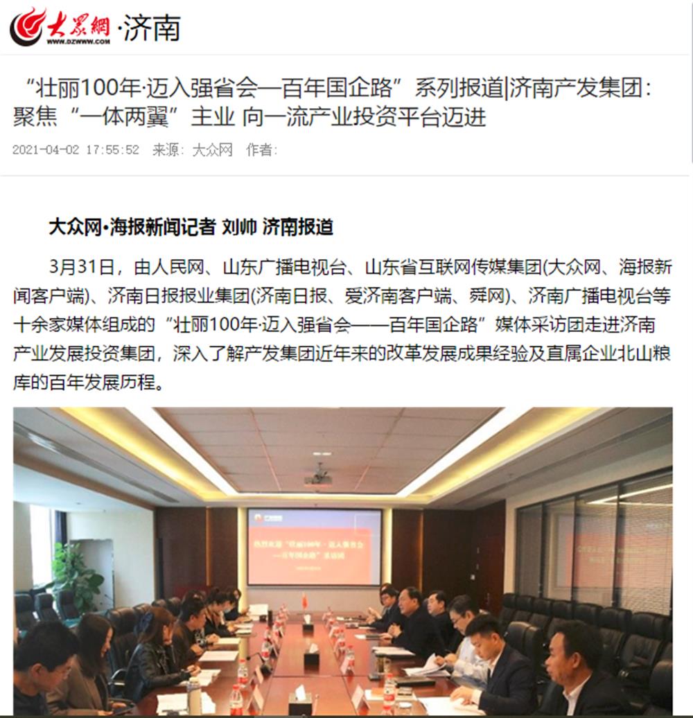 近日,市國資委舉辦的“壯麗100年·邁入強(qiáng)省會——百年國企路”媒體團(tuán)一行到訪濟(jì)南產(chǎn)發(fā)集團(tuán)后,人民網(wǎng)、大眾網(wǎng)、閃電新聞、濟(jì)南電視臺、濟(jì)南日報(bào)、帶濟(jì)南等多家國家、省市級媒體聚焦報(bào)道了集團(tuán)改革發(fā)展的成果經(jīng)驗(yàn)。